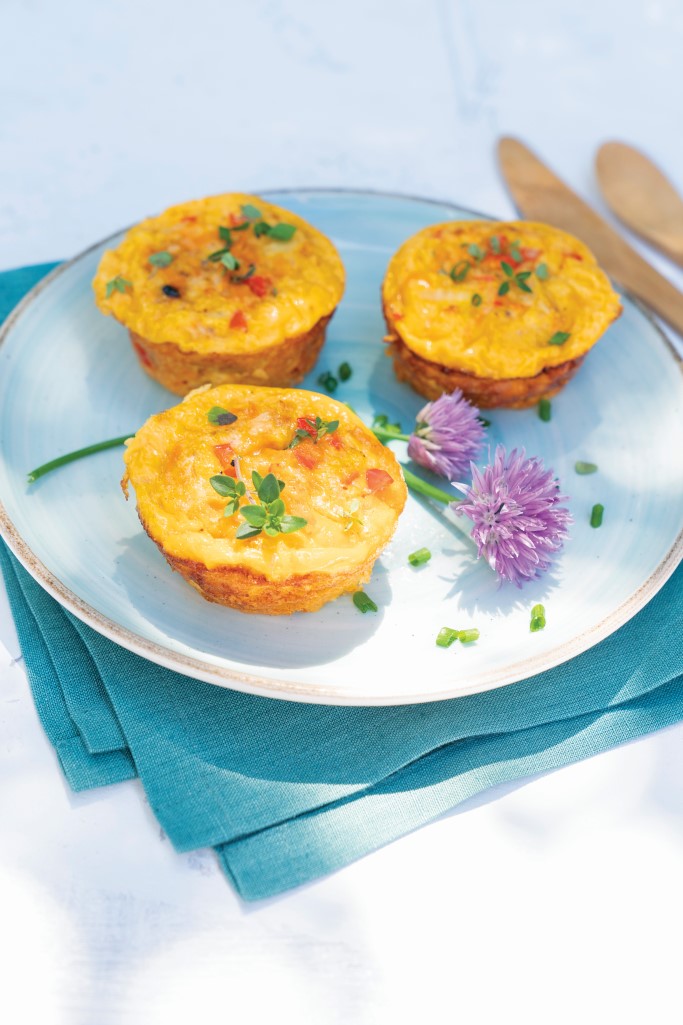 These mini-sized egg cakes offer up a savory way to work more protein and vegetables into snack time. Serve at room temperature or warm in the microwave.
